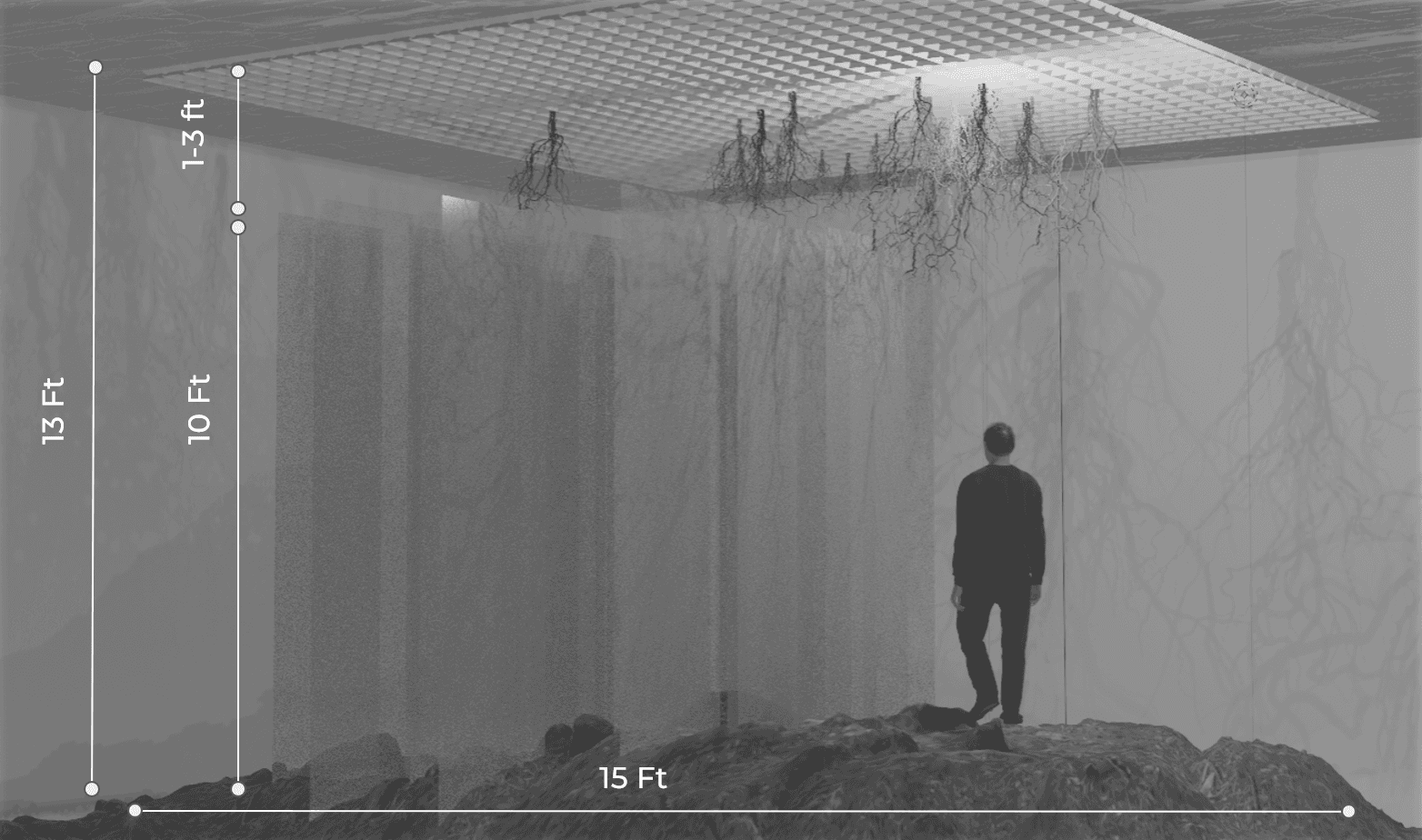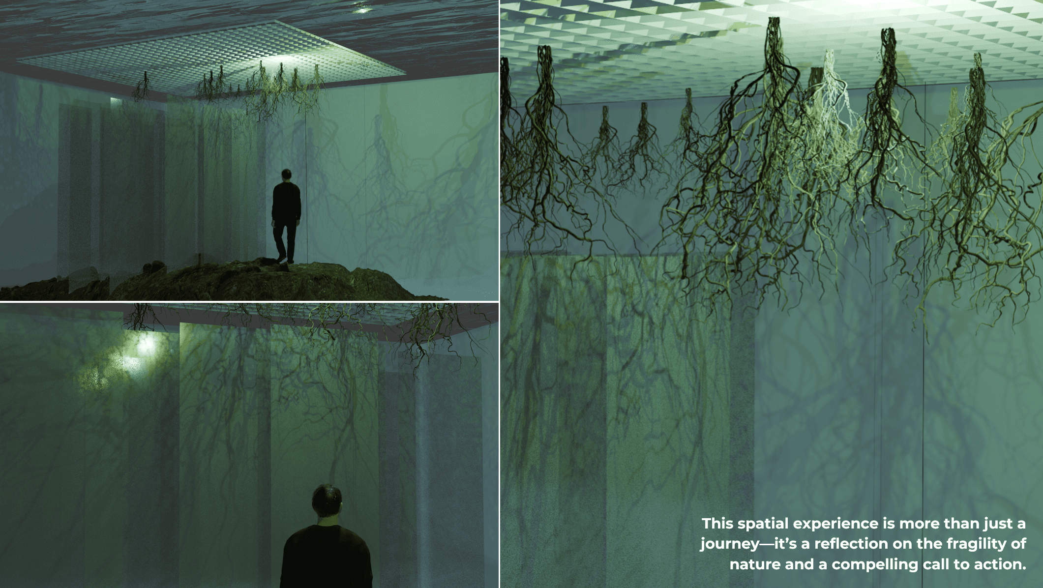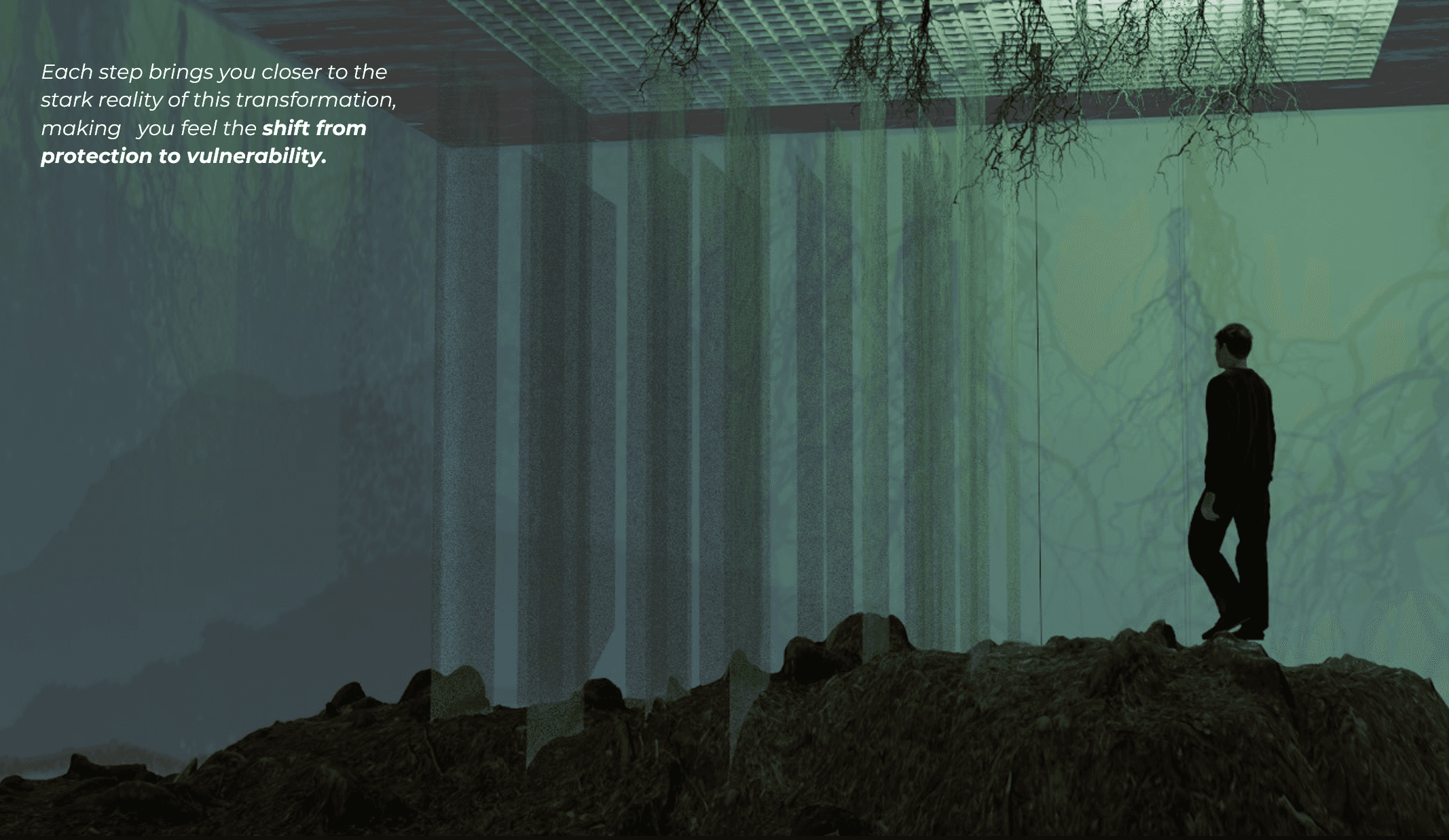 As you walk through the shifting depths, once-lush roots gradually give way to barren soil, showing the slow, relentless decay of these vital barriers.