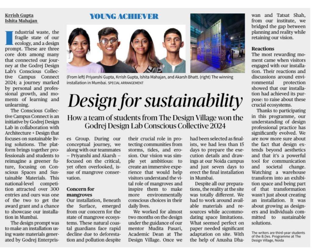 Conscious Collective - initiative by Godrej Design Lab The theme of this 2024 Campus Connect is Design for inclusivity Take an approach to - environmental, social, and financial sustainability. In keeping with the theme of Conscious Collective all installations will be fabricated using waste materials from the Godrej Enterprises Group Facilities