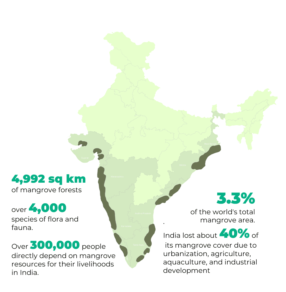 Mangroves acts as natural barriers that protect coastal regions from storms, tides and erosion while supporting diverse ecosystems. However, human activities like deforestation and pollution are rapidly destroying these vital forests.